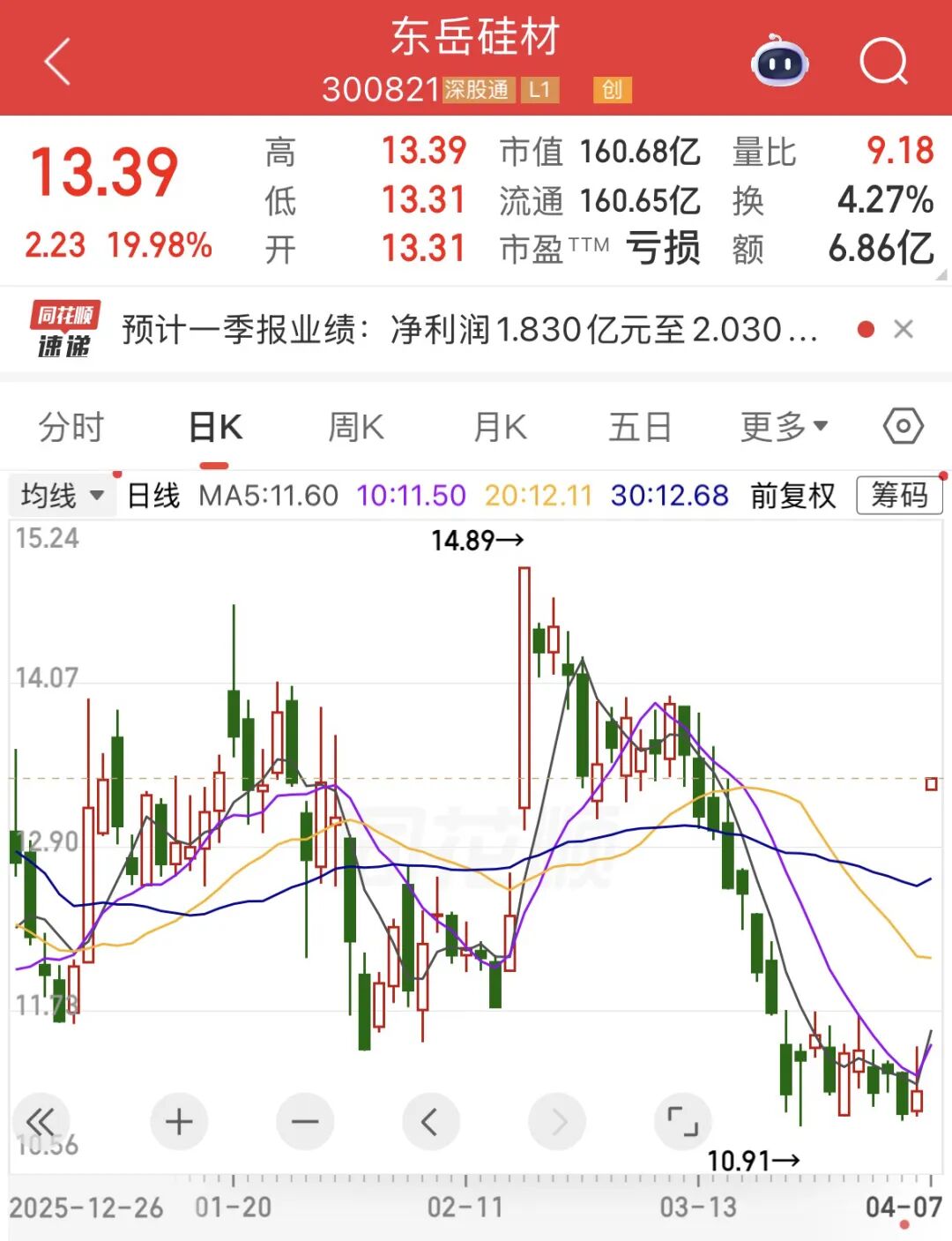 消息面上,东岳硅材4月3日晚间发布一季度业绩预告,预计一季度净利润1.83亿元至2.03亿元,同比增长397.02%至451.34%,业绩变动主要受市场环境及行业供需格局改善影响,有机硅行业主要产品价格上涨并回归合理区间,公司产品毛利率显著提升。