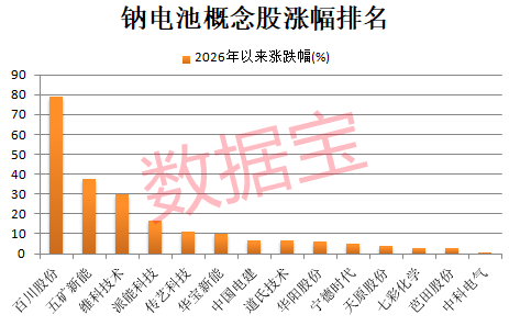 据证券时报·数据宝统计,二级市场表现方面,截至4月3日收盘,今年以来钠电池概念股平均下跌1.03%。其中6股逆势上涨超过10%,分别为百川股份、五矿新能、维科技术、派能科技、传艺科技、华宝新能。