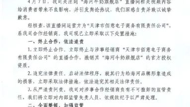 4月8日,@天津海河乳品有限公司 微博发布致歉声明,全文如下:据此前报道,近日有网友反映,某牛奶旗舰店直播间主播带货时言论低俗涉黄。截图信息显示,涉事直播账号为“海河牛奶旗舰店”,该旗舰店账号认证主体...