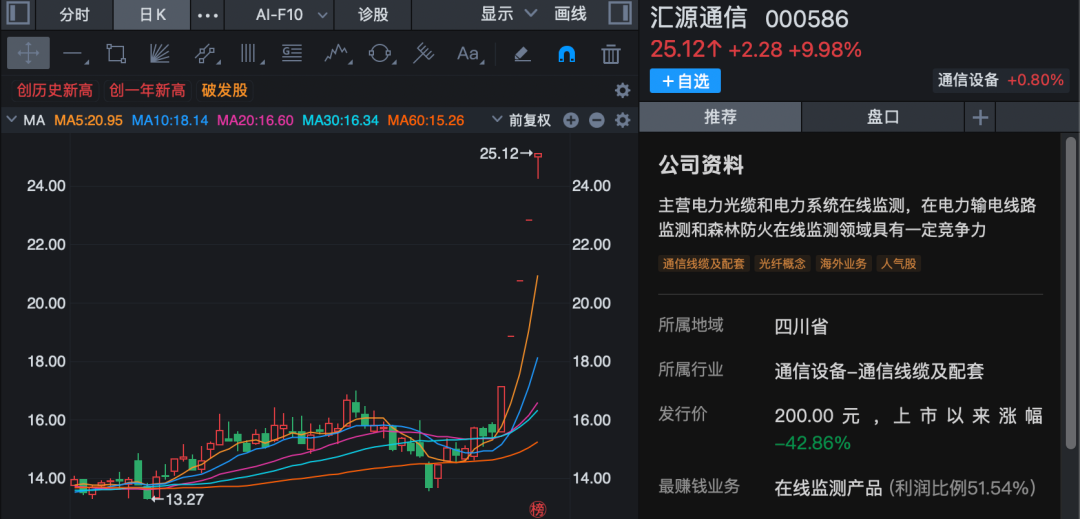 针对股价异常波动,汇源通信称公司董事会已进行全面核查,公司目前经营情况正常,不存在应披露未披露的重大事项,不存在违反信息公平披露的情形。