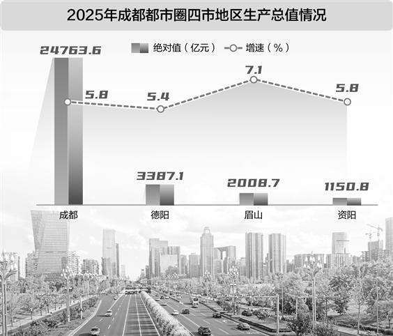 经过两个三年行动计划,成都、德阳、眉山、资阳四市GDP从2020年的2.24万亿元增至2025年的3.13万亿元,已占四川省的46.3%。此次万亿级项目集群落地,既是弥合区域发展差距的“均衡器”,也是重构成都都市圈产业生态的“加速器”。