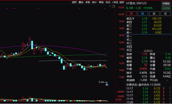 今天上午ST板块出现调整,整体表现低迷。ST亚光“20cm”跌停。