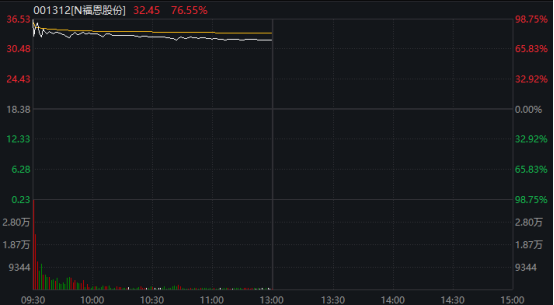 另一只新股福恩股份盘中涨幅一度超过90%。