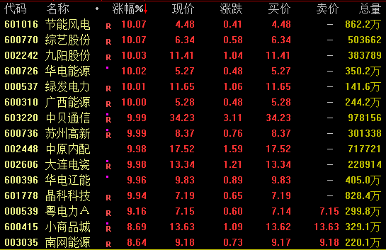 绿电概念盘中走势活跃,截至收盘,节能风电、华电能源、绿发电力、广西能源、华电辽能等十余股涨停。值得注意的是,华电辽能已连续3个交易日涨停。