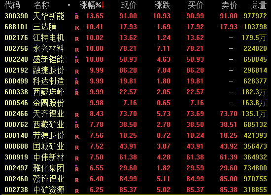 锂矿板块盘中走势活跃,截至收盘,天华新能涨近14%,永兴材料、盛新锂能、融捷股份、西藏珠峰等涨停;天齐锂业涨超8%,盘中一度触及涨停。