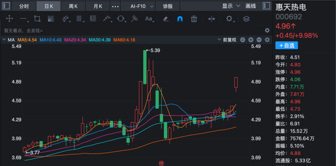 电力板块反复活跃,惠天热电涨停,大唐发电、华银电力、涪陵电力、明星电力跟涨。