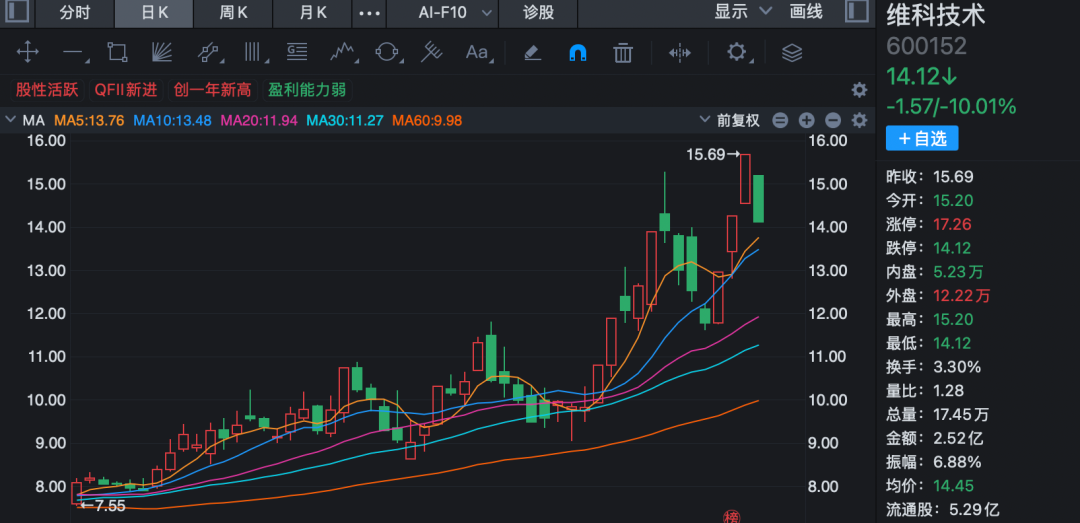 早盘,固态电池概念下挫,3连板维科技术(600152)跌停,中科电气、国轩高科、五矿新能、先导智能、佛塑科技、曼恩斯特等跌幅靠前。