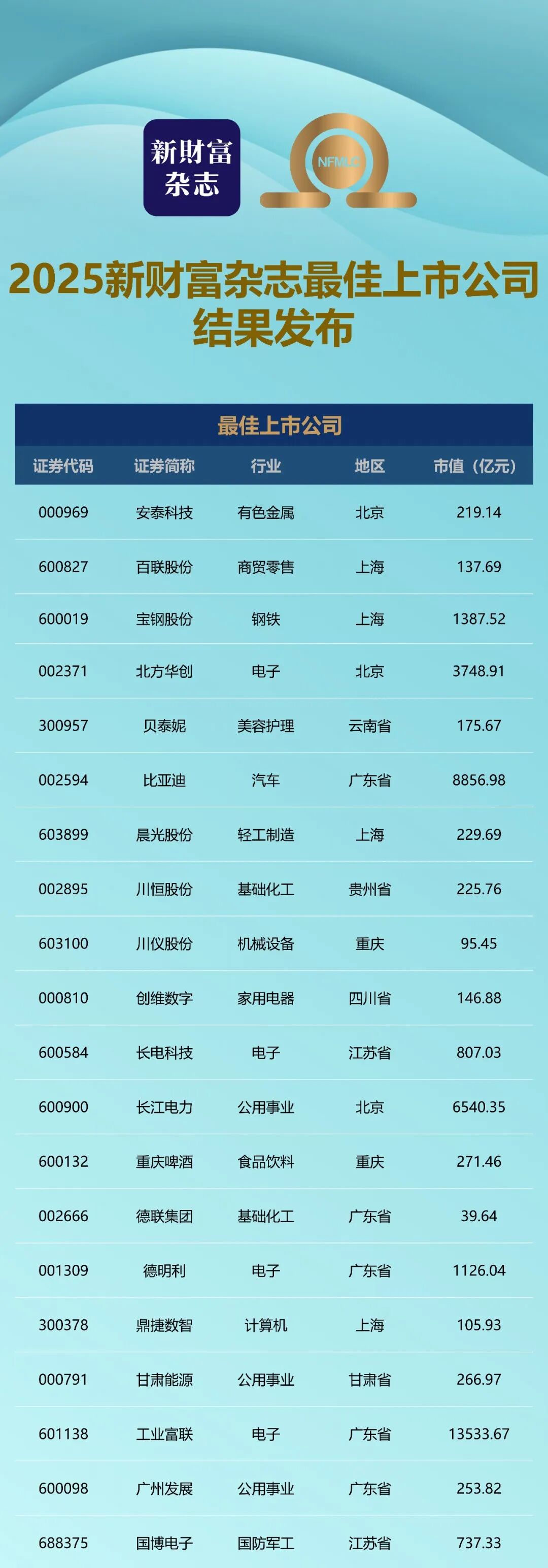“2025新财富杂志最佳上市公司”活动于2026年1月正式启动,参与的样本公司包括于2023年12月31日及之前上市的所有A股公司,覆盖主板、科创板、创业板、北证。本次活动旨在对中国上市公司信息披露质量、可持续发展(ESG)表现、品牌影响力等进行综合评估,挖掘在诚信经营、可持续发展、国潮品牌方面表现最受市场认可的典型代表,并通过总结推广其经验,推动资本市场构建良好生态。