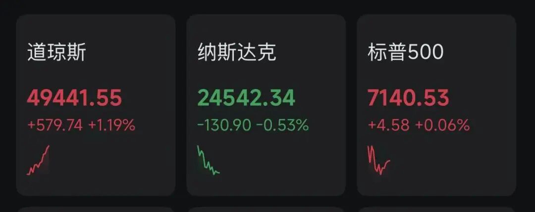 4月30日晚间,美股三大指数开盘涨跌不一。道琼斯指数开盘后持续走高,截至发稿涨幅扩大至1.19%;纳斯达克指数则走低。