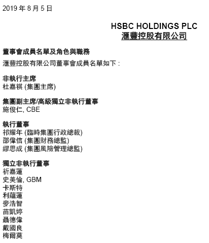 8月5日汇丰控股发布公告称,范宁(John Flint)辞去集团行政总裁和董事职位。范宁现年51岁,2018年2月就任汇丰集团行政总裁。在他离职期间,集团全球商业银行业务负责人诺埃尔·奎因将担任临时行政总裁,直到选出新的继任者。