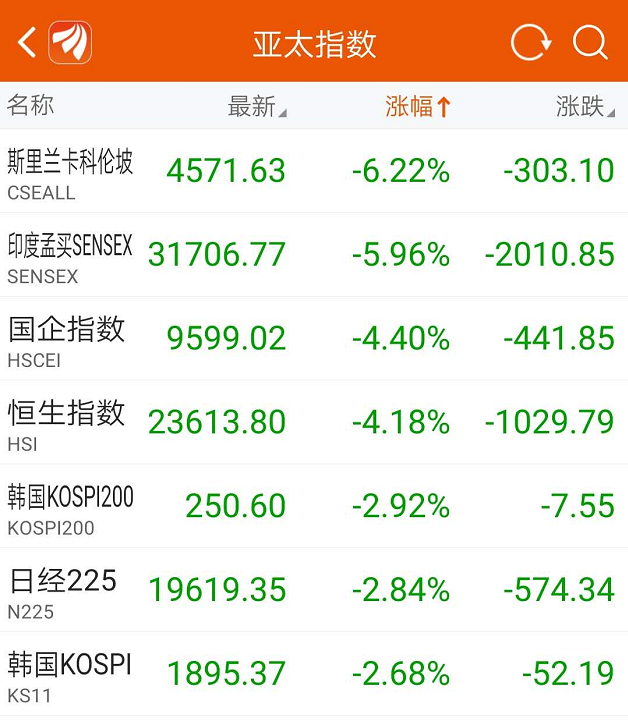 5月4日亚洲股市,斯里兰卡、印度股市当天跌近6%左右,韩国综合指数、日经指数跌超2%。