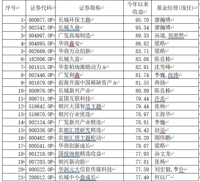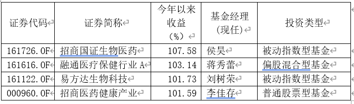 更有4只基金收益超100%
