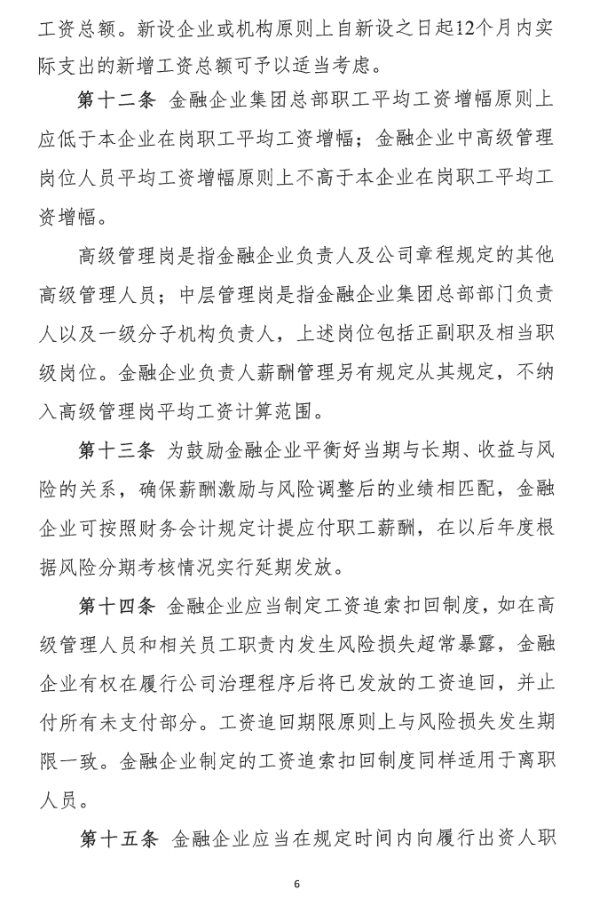 细则称在境内外设立的国有独资及国有控股金融企业(含国有实际控制金融企业)、国家主权财富基金、国有金融控股公司、国有金融投资运营机构以及金融基础设施等金融机构,工资总额增长要综合考虑经济效率、劳动生产率等因素确定。