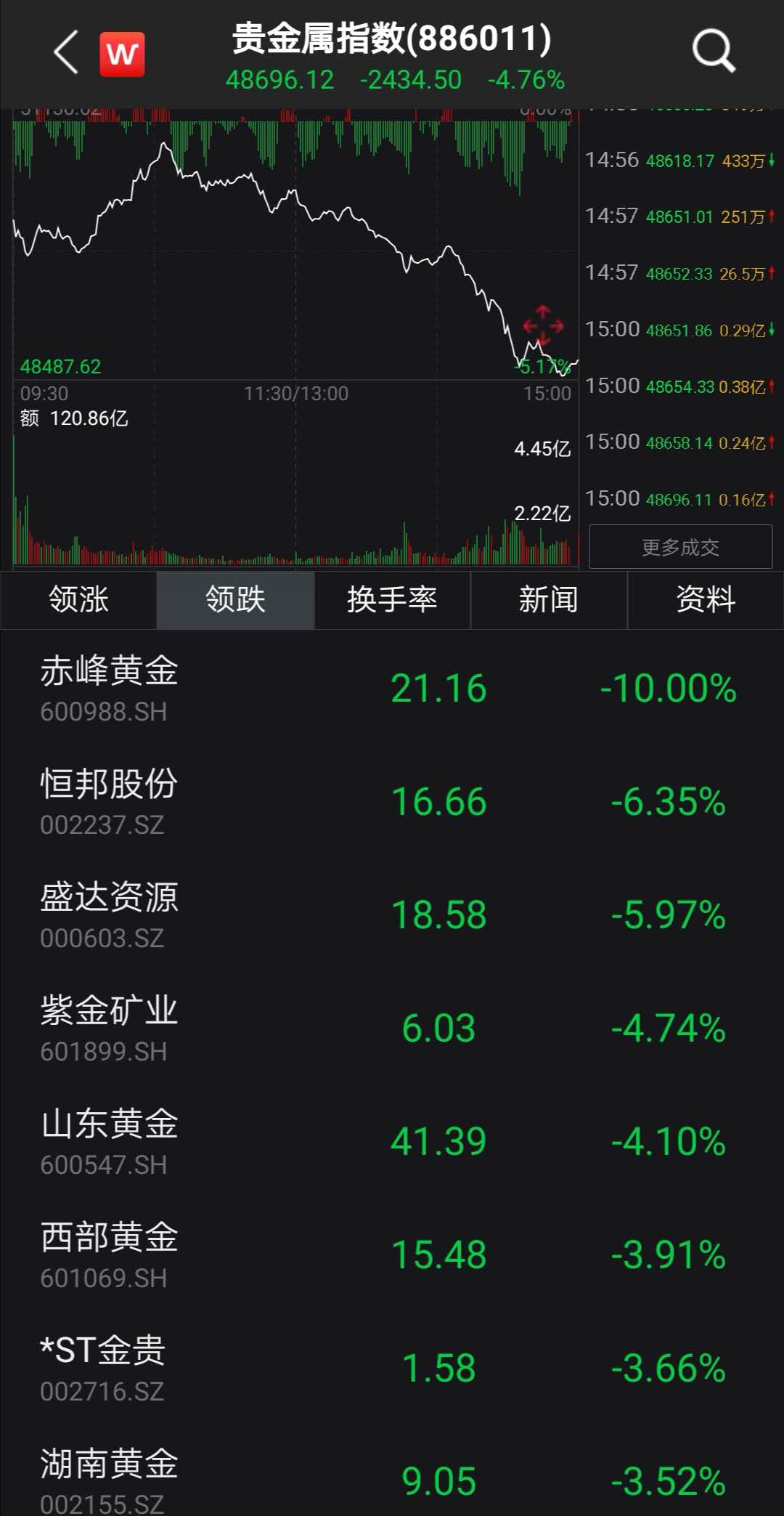 受金价大跌影响,A股黄金概念股纷纷杀跌,赤峰黄金更是跌停报收。