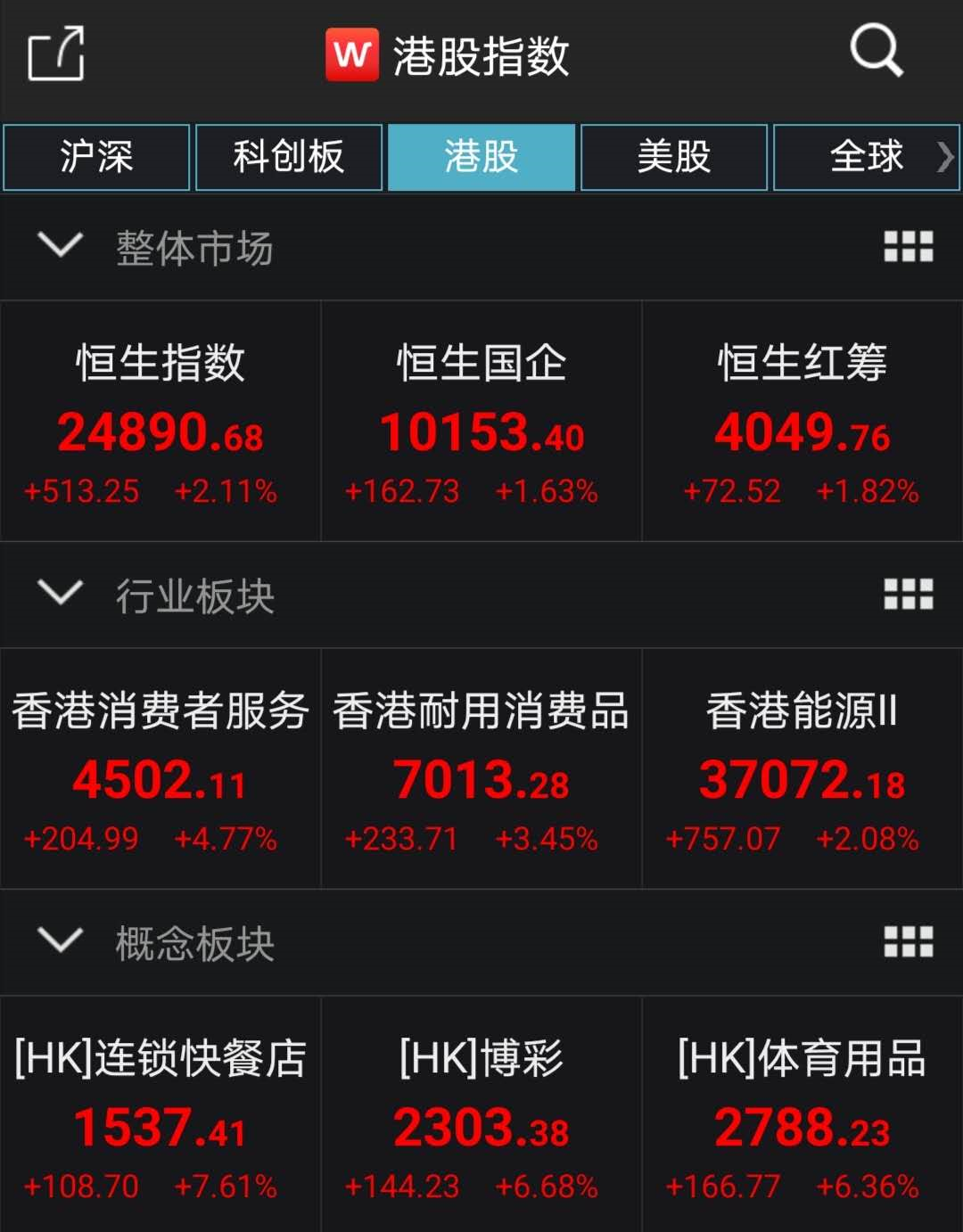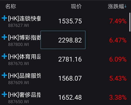 此外,受珠海居民从明日起恢复澳门自由行,博彩业也大幅上涨6.47%。