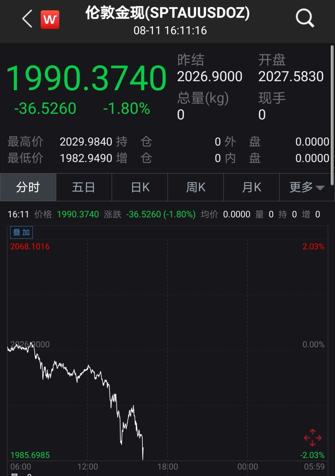 没想到,午后,黄金接连跳水,一度跌破1900美元。截至发稿,伦敦金现再度跌破1990美元。