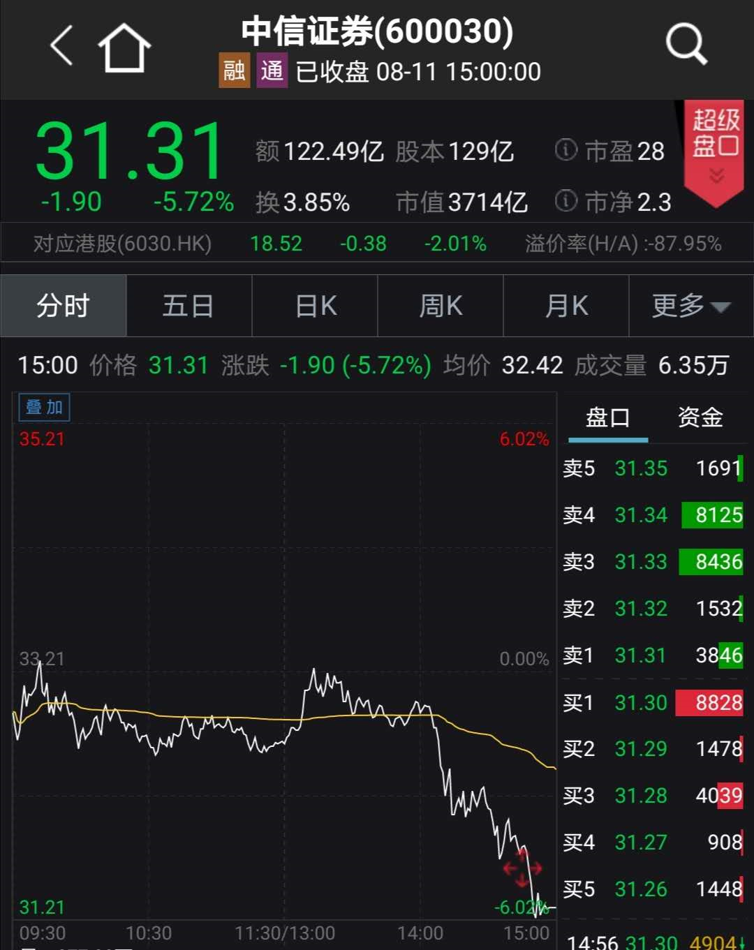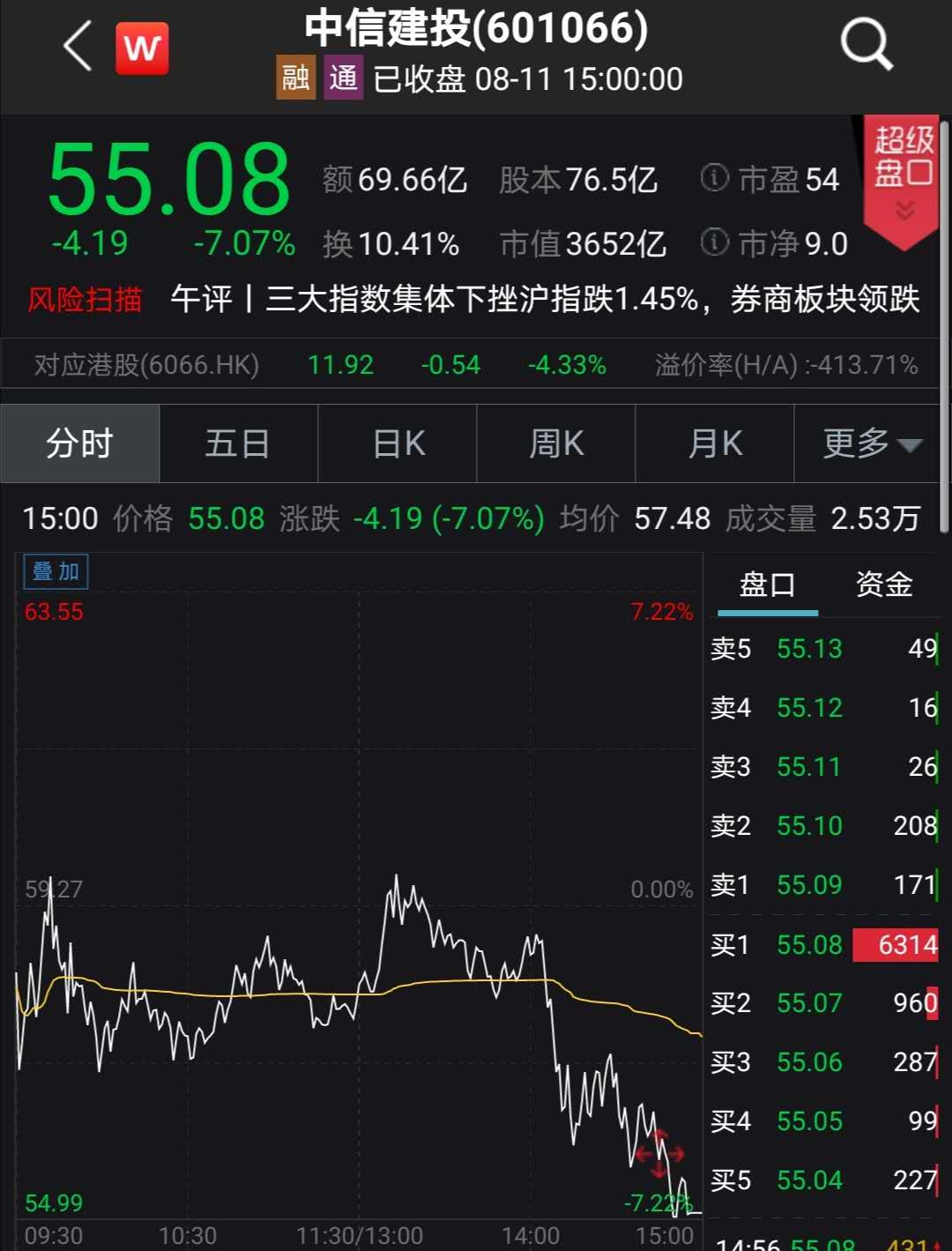 “券商一哥”突然砸盘 1小时蒸发470亿元