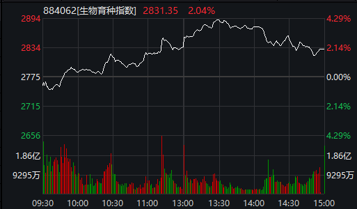 午后农业种植持续走高,登海种业回封,隆平高科大涨7%,丰乐种业、荃银高科、亚盛集团、万向德农跟涨。