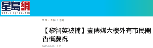 8月10日,香港警方以涉嫌违反香港国安法拘捕“壹传媒”黎智英等人。