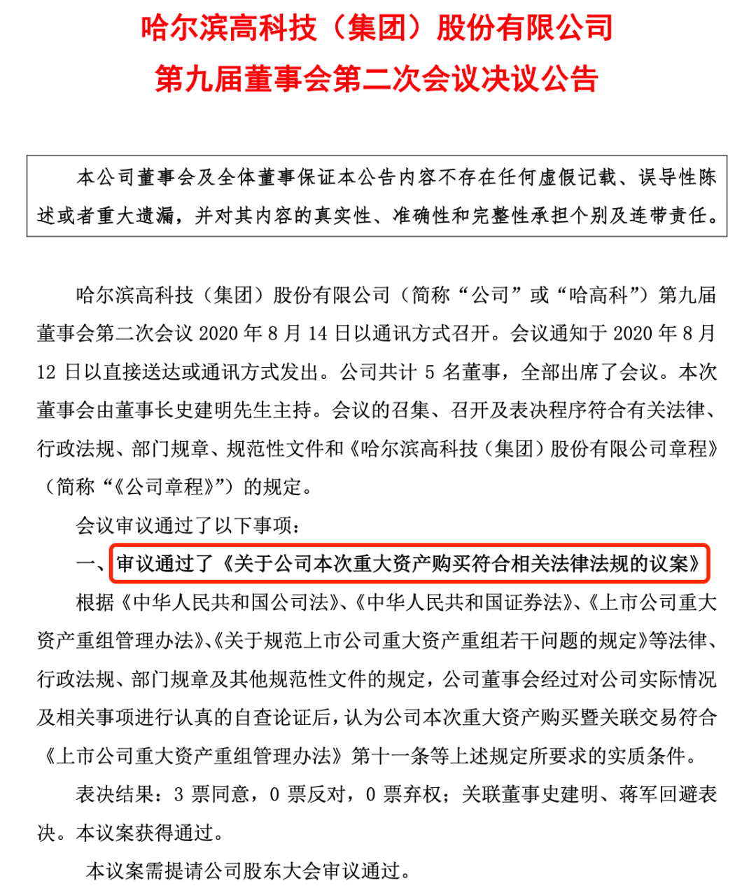 据悉,哈高科的此次收购预计还需闯过3大关口:包括再次召开董事会审议本次交易的重大资产购买暨关联交易报告书(草案)等议案;股东大会批准本次交易;上交所对本次交易进行合规性确认。