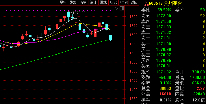 受茅台发债进行多元化收购影响,今日贵州茅台跳空低开低走,截至午间收盘大跌3.13%,创近2个月最大跌幅,股价也创近1个月新低,市值损失约680亿元。在贵州茅台大幅下挫带动下,今日白酒板块集体下跌,酒鬼酒重挫超5%,舍得酒业、泸州老窖、老白干酒等跌幅居前。