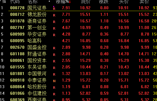 虽然国联证券与国金证券A股停牌,但港股国联证券并未停牌,早盘高开逾75%,后略有回调,但仍大涨近50%,成交量较前一交易日急剧放大超10倍。在国联证券放量飙升的带动下,平安证券集团控股、首都创投、西证国际证券等纷纷大涨。A股券商股也不甘寂寞,浙商证券开盘涨停,国元证券盘中一度直线拉涨停,哈高科、第一创业、华安证券等涨幅居前。