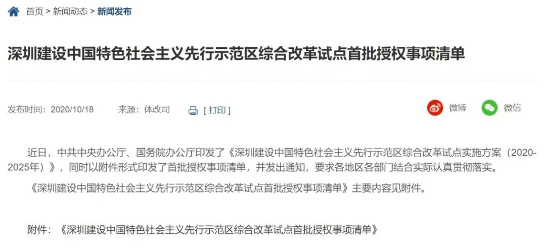 国务院新闻办公室于2020年10月18日时举行新闻发布会,中国证券监督管理委员会副主席阎庆民在会上表示,证监会将不断深入学习贯彻总书记在深圳经济特区建立40周年庆祝大会的讲话精神,认真落实好实施方案和首批综合改革授权事项清单中涉及资本市场的任务,包括着力支持深交所建设优质创新资本中心和世界一流交易所、着力支持新三板精选层挂牌企业转板上市、着力稳步扩大股票期权试点等。