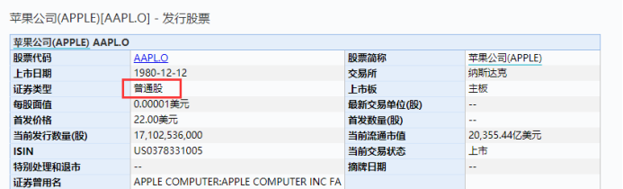 注册地在美国的公司,比如苹果,发行的就是普通股。