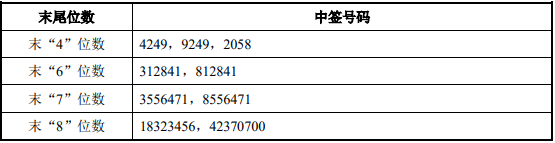 e公司讯,泰坦科技(688133)10月21日晚间披露中签结果,中签号码共有12973个,每个中签号码只能认购500股。末“4”位数:4249,9249,2058;末“6”位数:312841,812841;末“7”位数:3556471,8556471;末“8”位数:18323456,42370700。