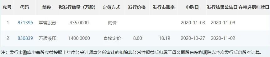 这意味着万通液压的网上申购时间比常辅股份更早,第二批精选层“打新”很快于下周二开启动,这2家公司发行申购时间间隔一周。