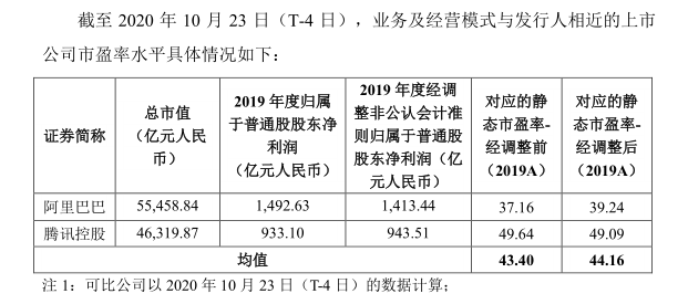 有机构研究人士向证券时报·e公司记者分析,按照发行价计算,对应蚂蚁总市值约为2.1万亿元,接近此前多家投行给出的1.7万亿至2.5万亿元预测值中值。考虑到成长性,发行价对应的2020年动态市盈率约为40余倍,尚低于科创板上市公司发行市盈率平均值。