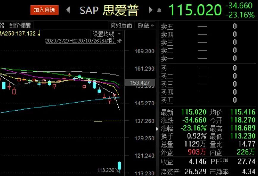 美国软件巨头SAP周一暴跌23%,创20多年来最大跌幅,市值单日蒸发两个“用友网络”。贝莱德、美国银行等多家持股机构踩雷。此外,甲骨文也一度大跌近6%,收盘大跌4.02%。