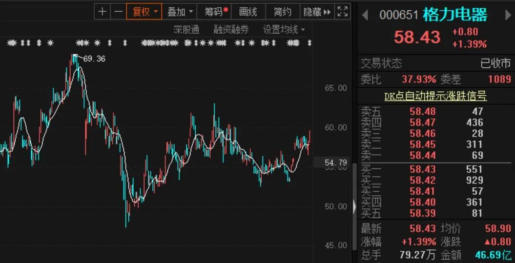 其实,在半年前,格力就抛出了60亿元的回购计划,回购实施已接近尾声,截至2020年9月30日,格力累计回购公司股份9418.47万股,占公司总股本的1.57%,最高成交价为57.00元/股,最低成交价为53.01元/股,支付的总金额为51.82亿元(不含交易费用)。