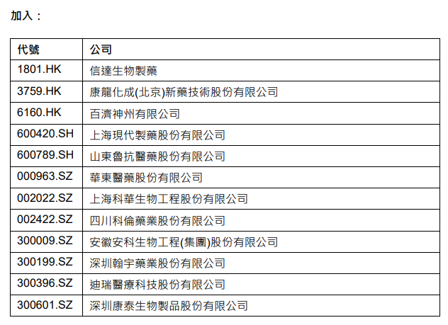 e公司讯,恒生指数有限公司宣布截至2020年10月31日恒生沪深港创新药精选50指数的半年度指数检讨结果:百济神州、康龙化成等将加入,剔除中国生物制药。