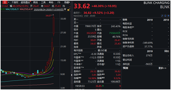 而另一家名叫Blink Charging的电动汽车充电站公司当天也疯涨48.30%,盘后进一步上涨9.52%。今年以来,该公司股价累计涨幅已超过1700%。