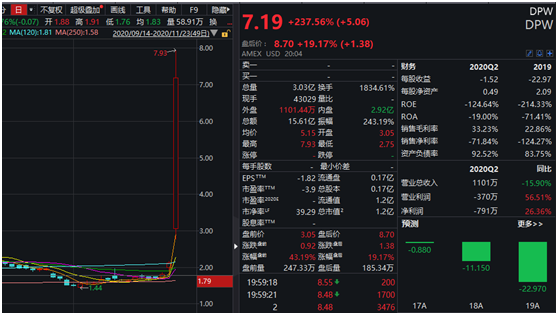 当地时间11月23日,美国特拉华州一家名为DPW Holdings,Inc. 的公司股价暴涨237.56%,当天盘后进一步上涨19.17%。在此之前的年内多数时间,这家公司股价表现平平无奇。