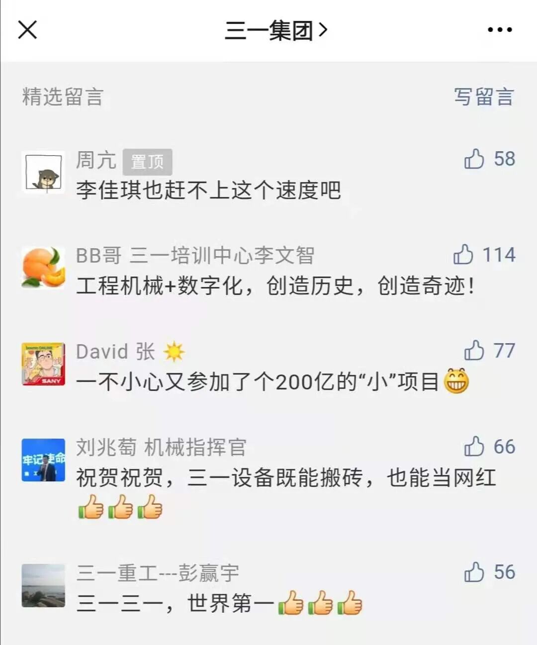 11月26日晚上8点,三一“全球购机狂欢夜”启动。来自后台数据显示,活动在启动1分钟内,就有34万人进入直播间,8分钟定金额突破1亿元,2小时交易额突破234.89亿元,仅挖掘机就卖了17919多台,刷新行业全球单场线上促销活动的新纪录。三一重工总裁向文波也来到活动地,现场见证奇迹诞生。