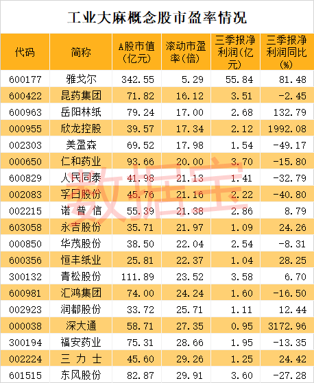 从估值水平来看,19只工业大麻概念股市盈率不足30倍,市盈率最低的是雅戈尔,仅5.29倍。12月1日晚间,雅戈尔公告表示,截至2020年12月1日收盘,公司累计出售宁波银行约2.96亿股,交易金额约为100亿元,净利润约为26.46亿元,公司仍持有宁波银行约5亿股,占其总股本的8.32%。