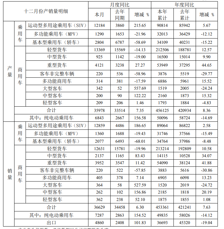 e公司讯,江淮汽车(600418)1月8日晚间公告,2020年12月份,纯电动乘用车销量为7287辆,同比增长154.52%。