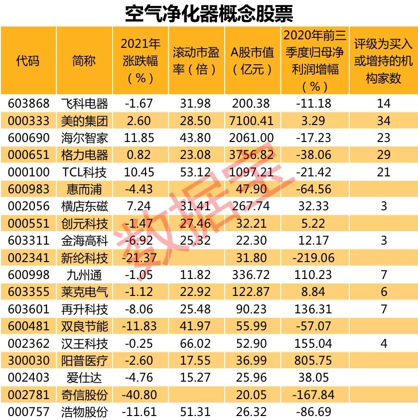从厂家竞争来看,空气净化器高端品牌有霍尼韦尔、大金、夏普、飞利浦、安利等;其他品牌有派瑞、美的、亚都、小米、格力、松下、三洋、海尔、领锋环境科技、远大等几十家。A股市场上相关公司也有望受益于这个大风口,股价有所表现。