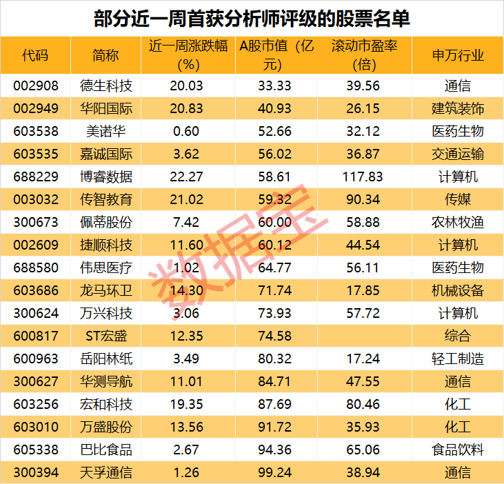 上调评级是分析师对公司的积极评价。数据宝统计显示,近一周合计有2家公司获券商分析师上调评级。