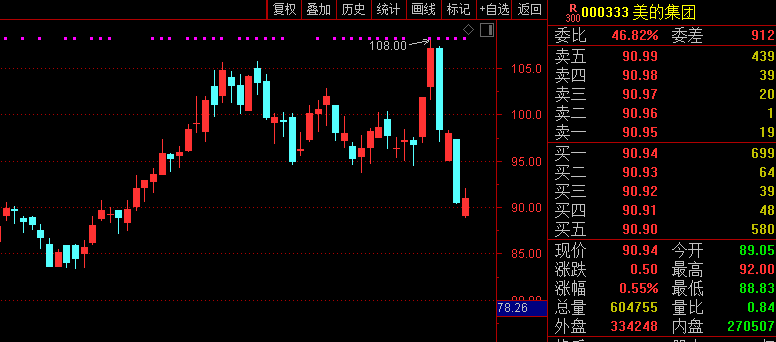 证券时报·e公司记者关注到,在回购方案推出前,美的集团股价连续下挫。自2月18日以来,累计跌幅超17%,市值蒸发超1000亿。公司最新股价为90.94元/股,本次回购价格上限达当前股价的154%。