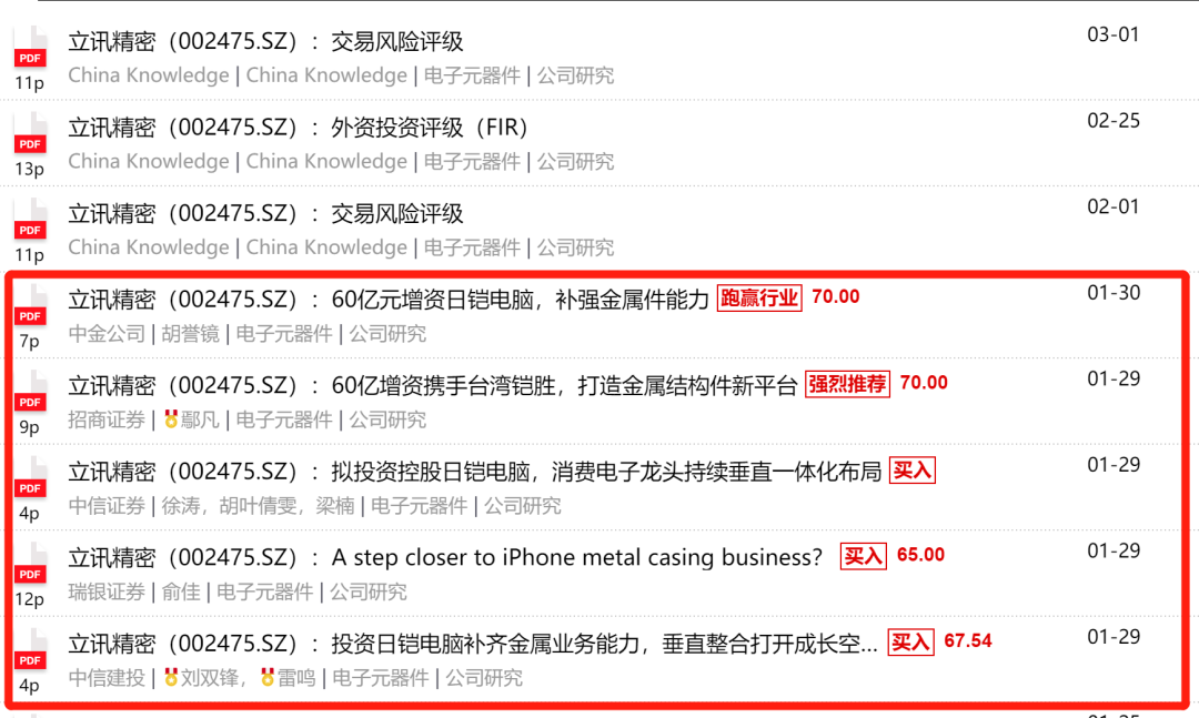 虽然股价暴跌近40%,但近2个月内,中信证券、招商证券、中金公司等券商均发研报唱多立讯精密,多家看高至70元每股。