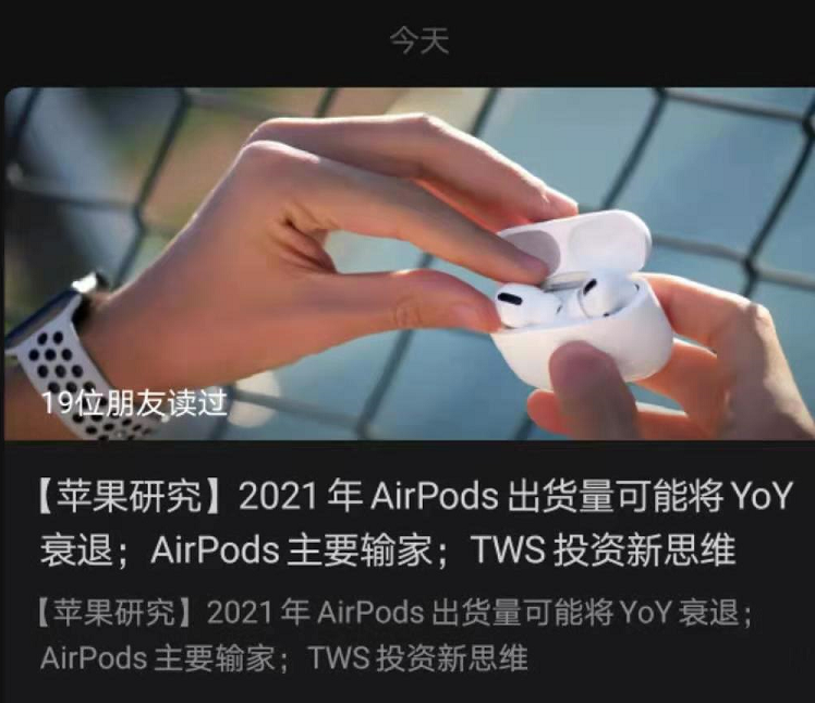 他们认为AirPods出货衰退的原因,在于当硬件卖点难与竞争对手低价产品差异化时,又欠缺强大的生态来保护出货增长。