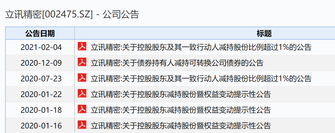 值得注意的是,在此前,立讯精密股价一路高歌时,据悉,2020年1月15日至今,立讯有限及王来胜共有五次大额减持行为,期内共减持3.75亿股股份,总计套现183.60亿元。