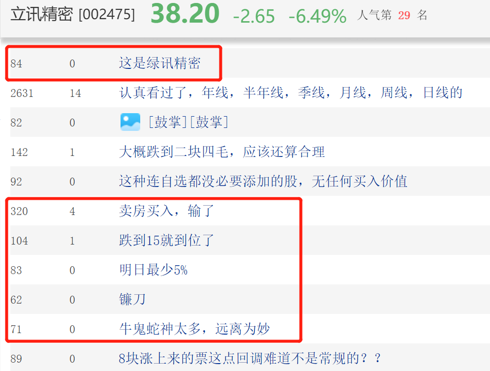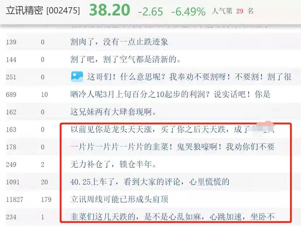 最近,苹果产业链的龙头股份,立讯精密的股吧异常活跃。原因无二,就是不少股民亏钱了。