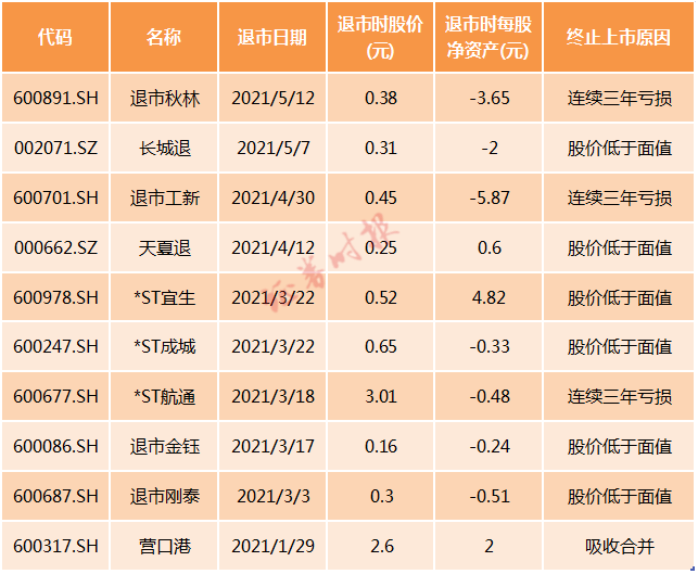 Wind统计数据显示,今年以来,A股在此之前已经有10家上市公司完成退市。