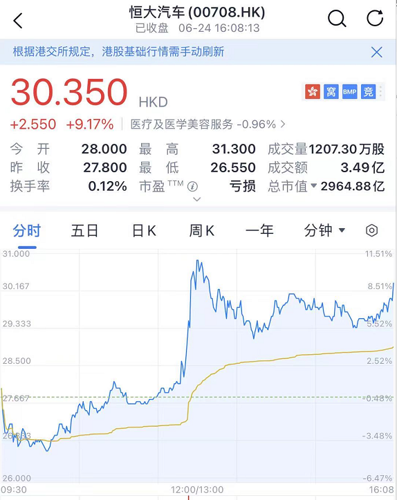 受消息影响,中国恒大、恒大汽车的股价直线拉升,截至发稿,涨幅有所收窄。