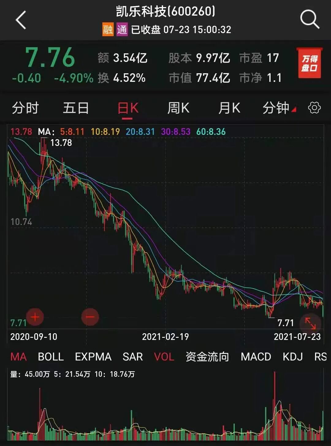而凯乐科技股价23日低开低走,收盘大跌近5%。