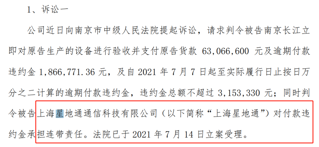 国瑞科技的公告显示,3月27日,上海星地通与国瑞科技签订《补偿协议》,约定上海星地通承担督促富申实业、南京长江电子等买家按期支付货款的责任,如买方逾期,则由上海星地通补偿国瑞科技购销合同约定的违约金,补偿额不超过相应合同总金额的5%。
